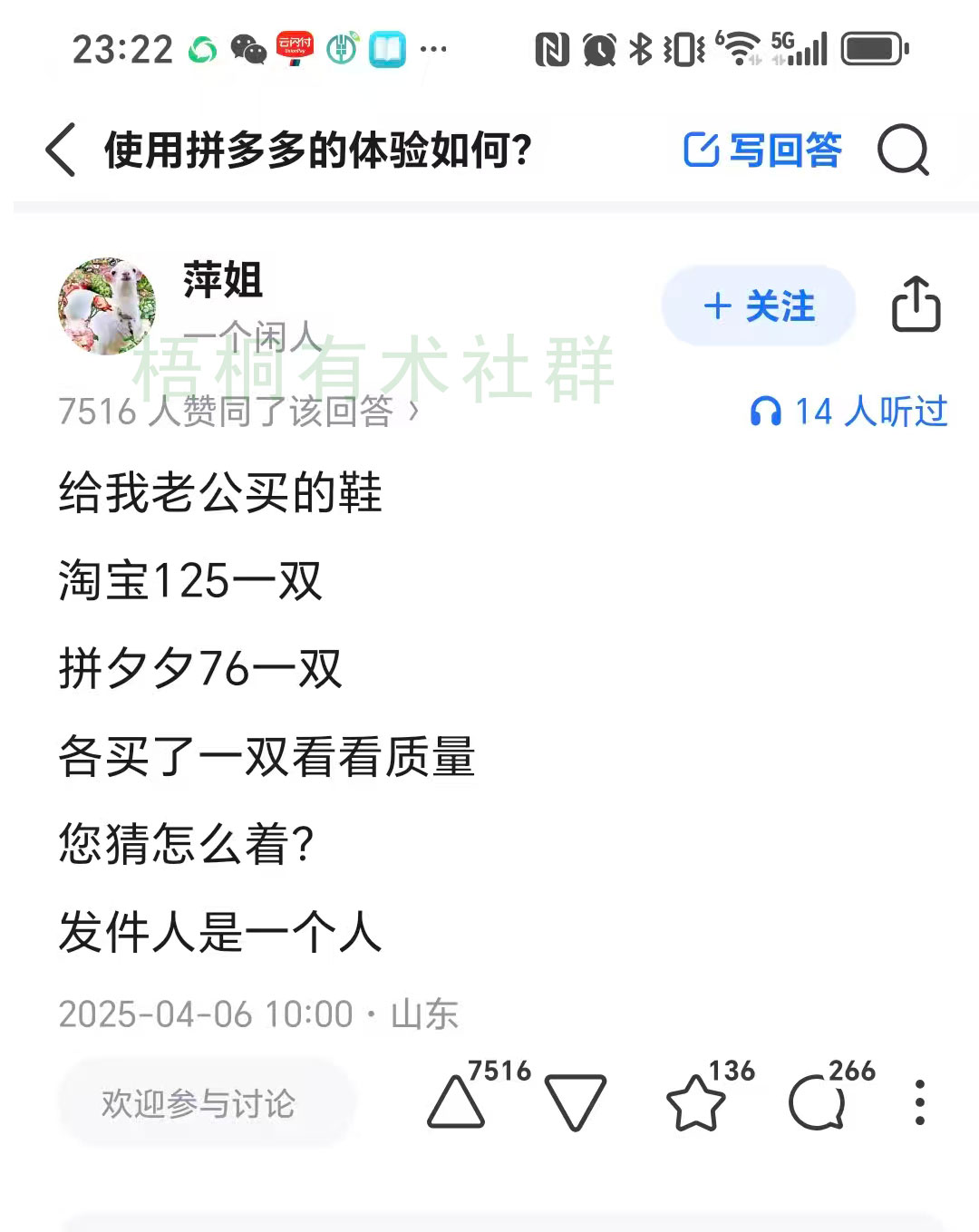 那么如何才能避免这种现象的发生呢?很简单,我们抽选一些比较有意思的小回答来拼凑到自己的文章里!也就是说,咱们只找那些低于100字,或者100字左右的回答,而且看上去比较有意思的回答。如图所示,假设我们使用了“使用拼多多的体验如何?”这个标题来做文章,那么我们就去底下找一些回答比较简短,且看上去比较有意思的回答。