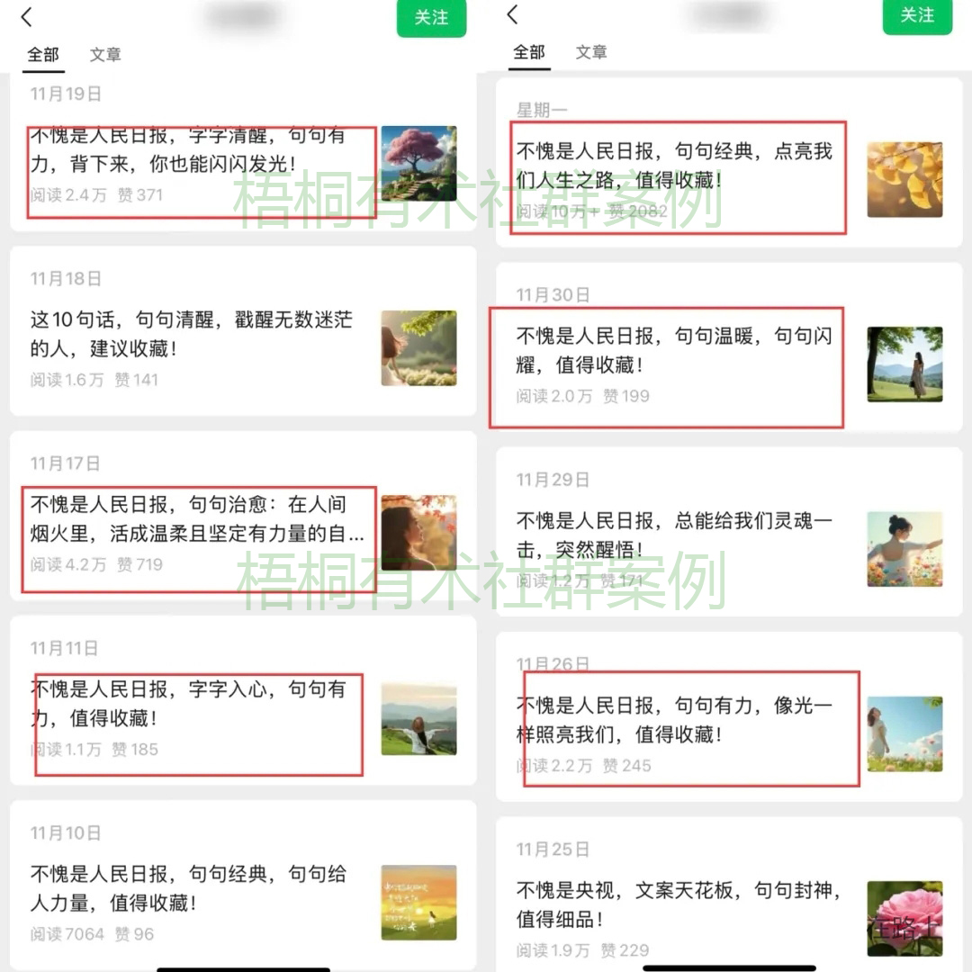 是不是阅读量突然很哇塞?这是为什么呢?首先,人民日报这个词,每天搜索量很大,其次,它比较有权威,容易带来粘性流量,同时,女性成长这个赛道,本身也是很受欢迎,很有女性粘性的赛道。女性本身喜欢看感性的内容,不像男性一样,非低俗的内容,他们连看都不看一眼。