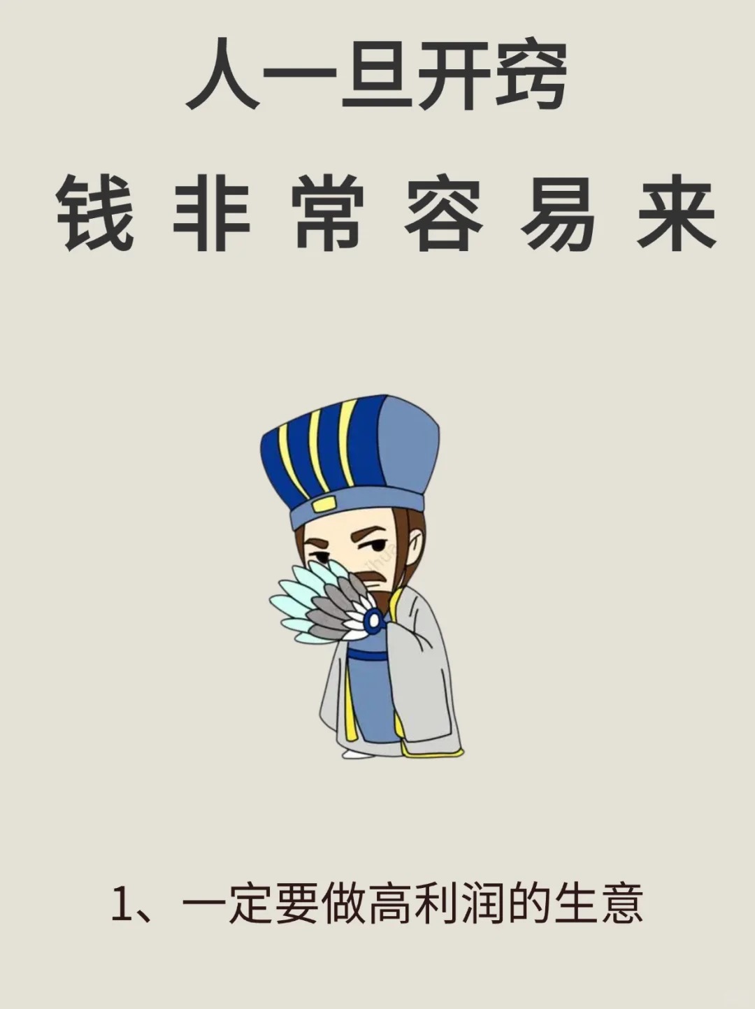 1、要想搞钱,就要走出去要想搞钱,就要走出去,可不能老是窝在家里空想。很多搞钱的生意其实都是在和人打交道的时候,比如喝酒聊天的过程中谈出来的。不管你有多忙,都得抽出空多出去进行有价值的社交活动,去结识一些优秀的人,融入不同的圈层。在这些高阶的圈子里,往往流传着最有价值的信息和资源,多和他们交流,就能...